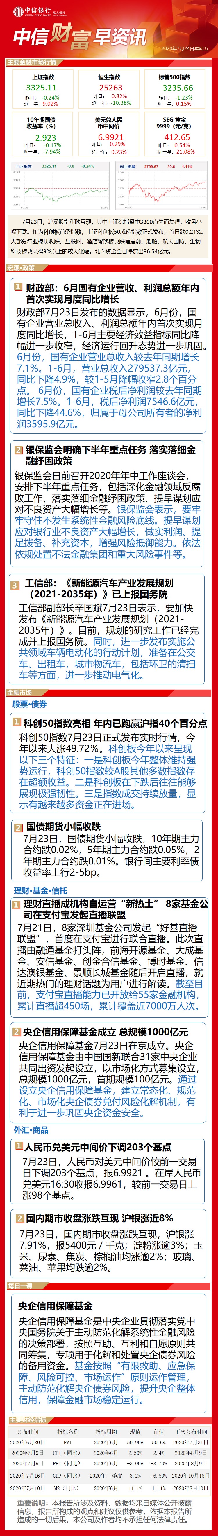 中信财富早资讯7月24日