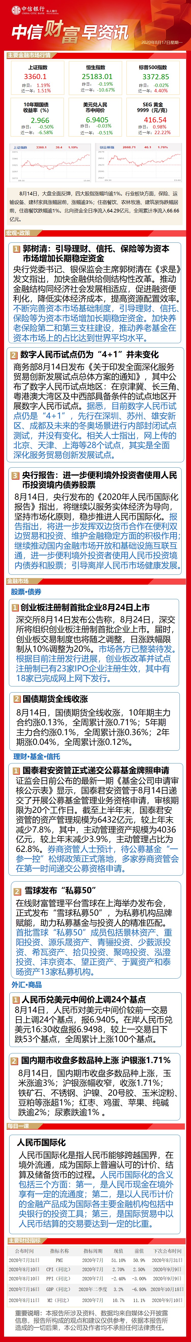 中信财富早资讯8月17日