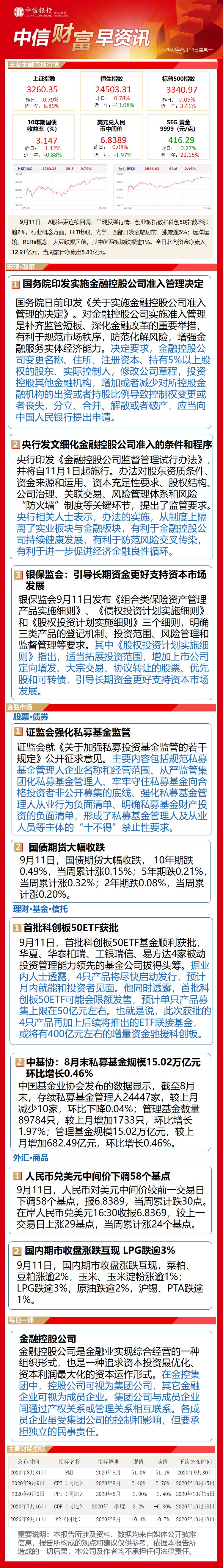 中信财富早资讯9月14日
