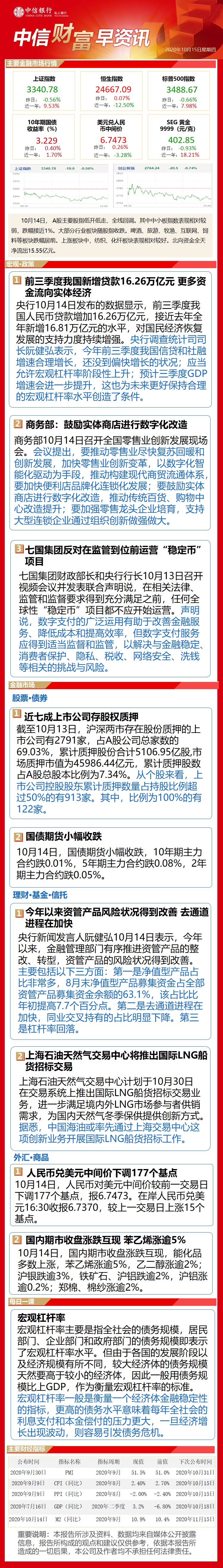 中信财富早资讯10月15日