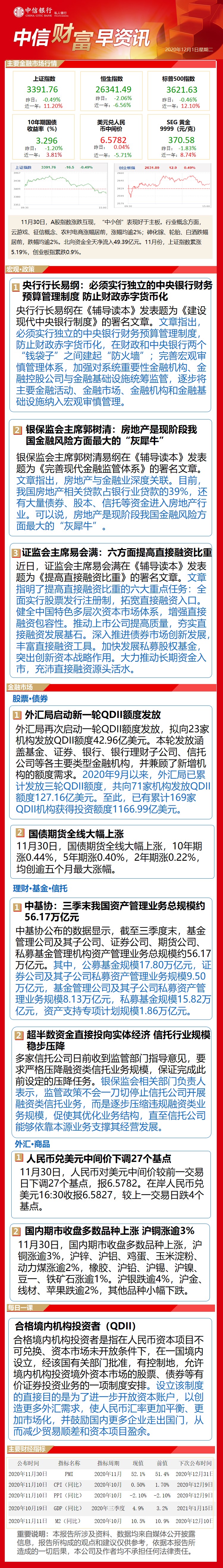 中信财富早资讯12月1日