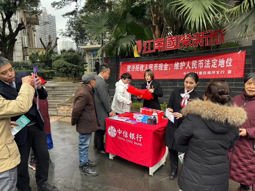 为持续贯彻执行整治拒收人民币现金相关工作要求,保证市场现金使用通畅,建设和谐支付环境,中信银行重庆分行组织多家支行员工走进社区、企业、乡村等重点区域开展整治拒收人民币现金专项宣传活动。活动重点聚焦商户多、居民集中、人流量大等特点,有针对性地为企业、菜市场摊主以及来往居民和商户员工积极宣传并强调人民币是国家法定货币,任何工作单位和个人不得以非法理由拒绝使用人民币现金,并耐心向大家讲解人民币现金知识。