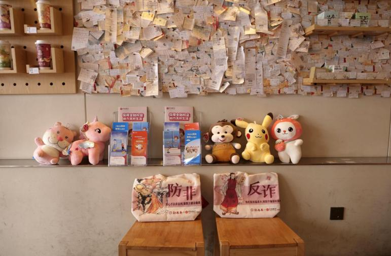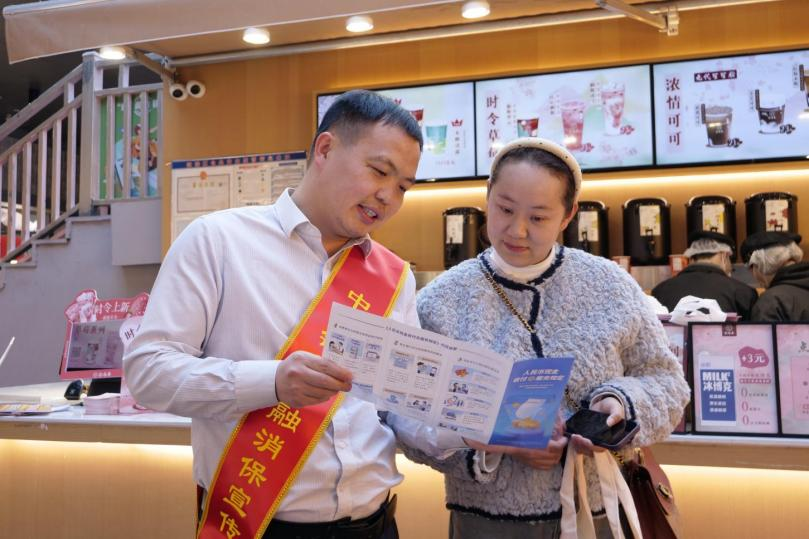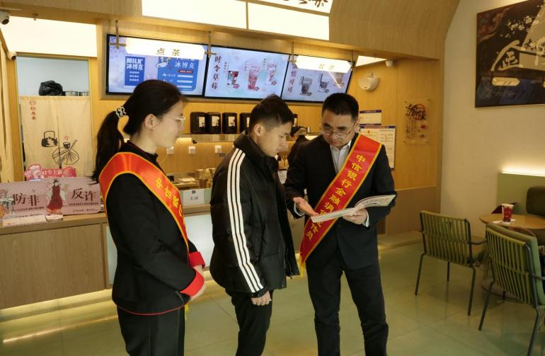 在南图店,带着孩子前来购茶的家长王先生不仅自己参与问答,还特意让孩子阅读店内反诈知识栏。“孩子马上要上大学了,最担心他碰到电信诈骗。”来自分行法律及资保部的员工用通俗易懂的语言为父子俩讲解征信保护和账户安全知识。王先生表示:“这种活动应该多办,让孩子从小建立防骗意识。”