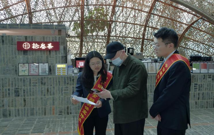 中信银行南京分行分行合规部、法律及资保部、风险管理部、运营管理部、财会资负部多个部门的员工们化身金融消保宣传员,结合“征信修复不可信”“高收益理财陷阱”“七大反诈利器”等典型案例,将茶饮展示台打造成金融知识传播点,用通俗易懂的语言进行情景化讲解。