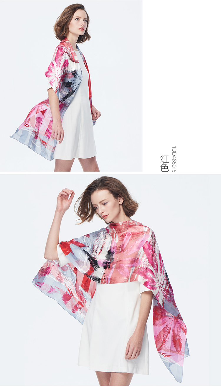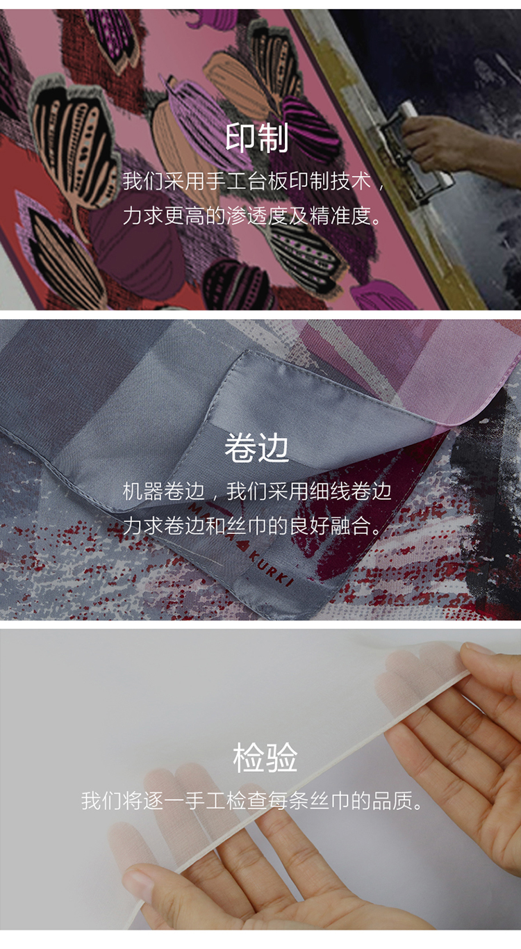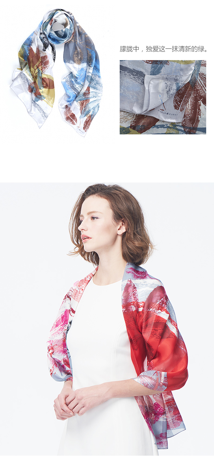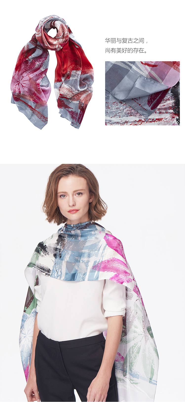 MarjaKurki玛丽亚.古琦 真丝丝巾 女士长丝巾桑蚕丝“顽皮叶子”灰色